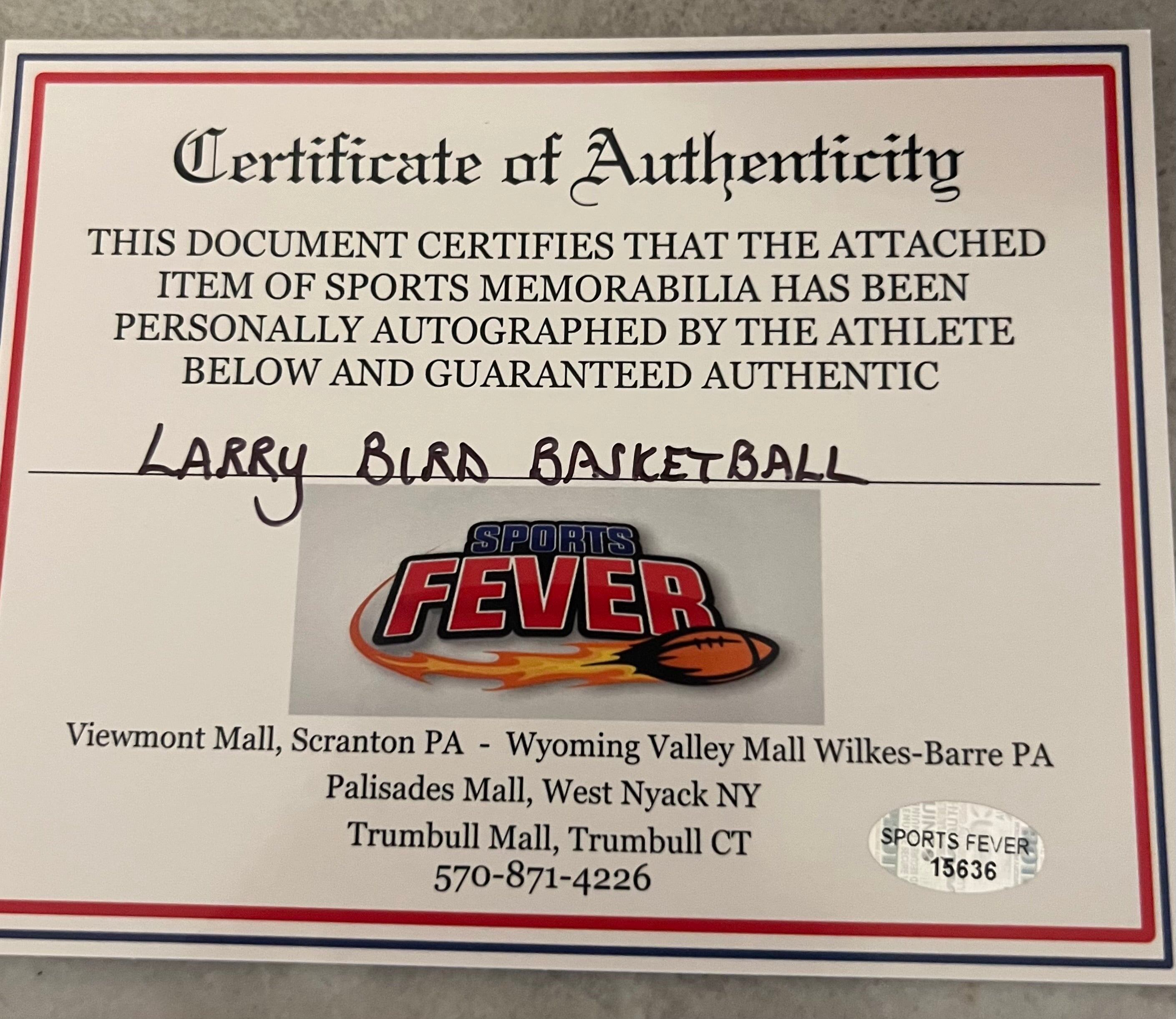 Larry Bird autographed Basketball… This is a regulation size basketball. Perfect condition/new This basketball is hand signed and comes with a certificate from Sports Fever and a 4x6 photo signing.