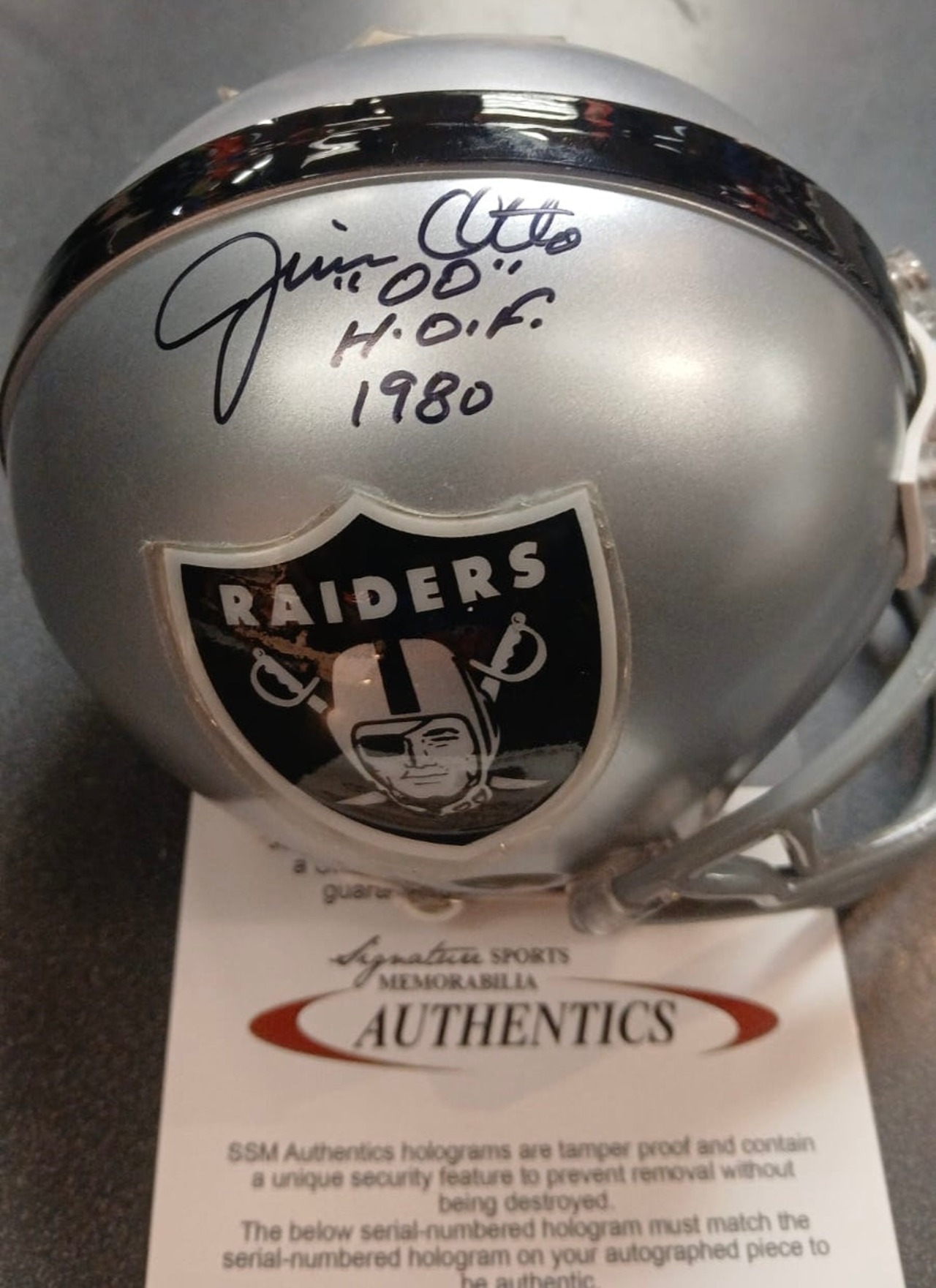 Jim Otto autographed Oakland Raiders mini helmet with COA… This is a hand signed standard size Riddell Mini helmet. ?This comes in perfect condition (new in the box)