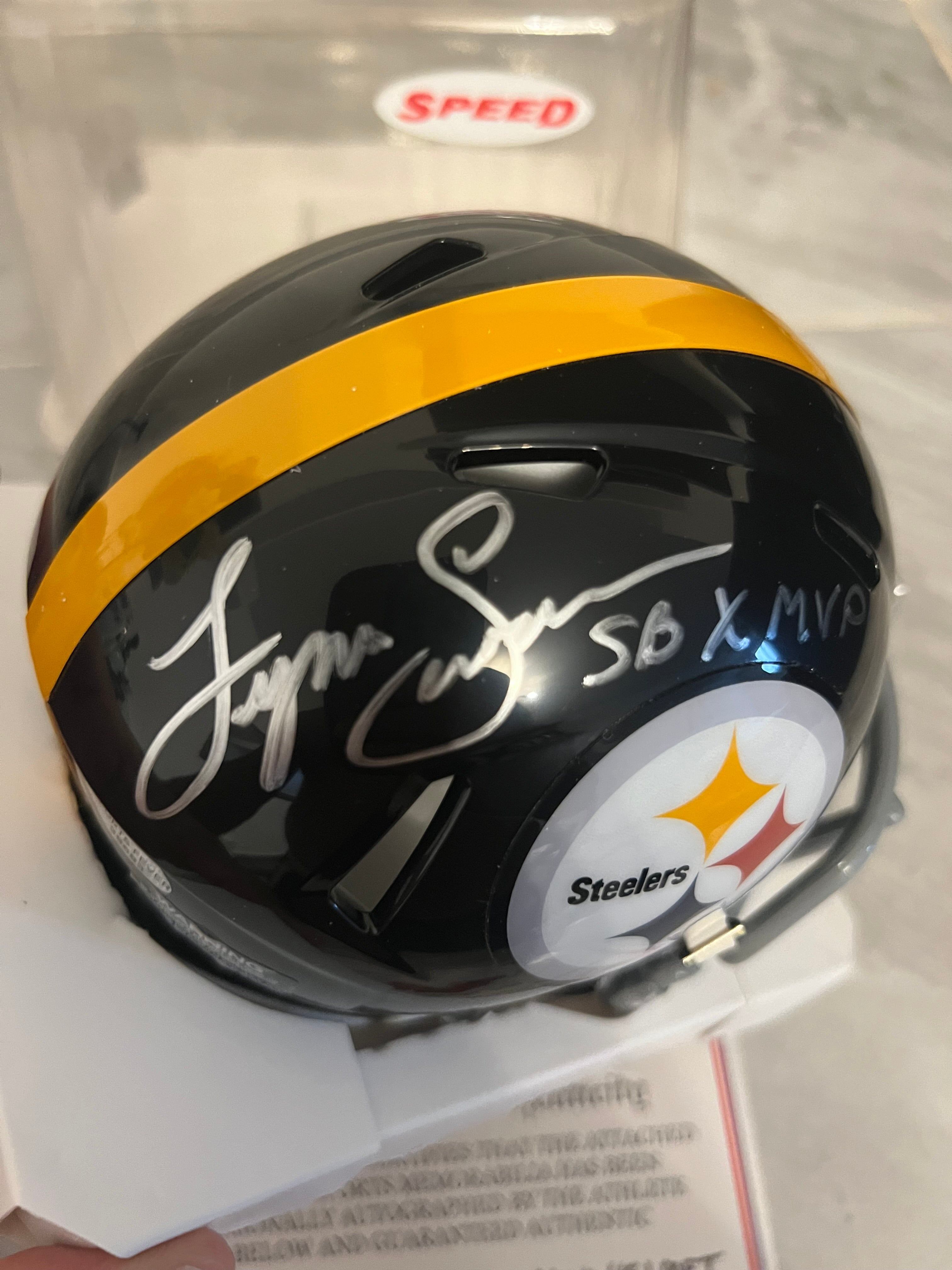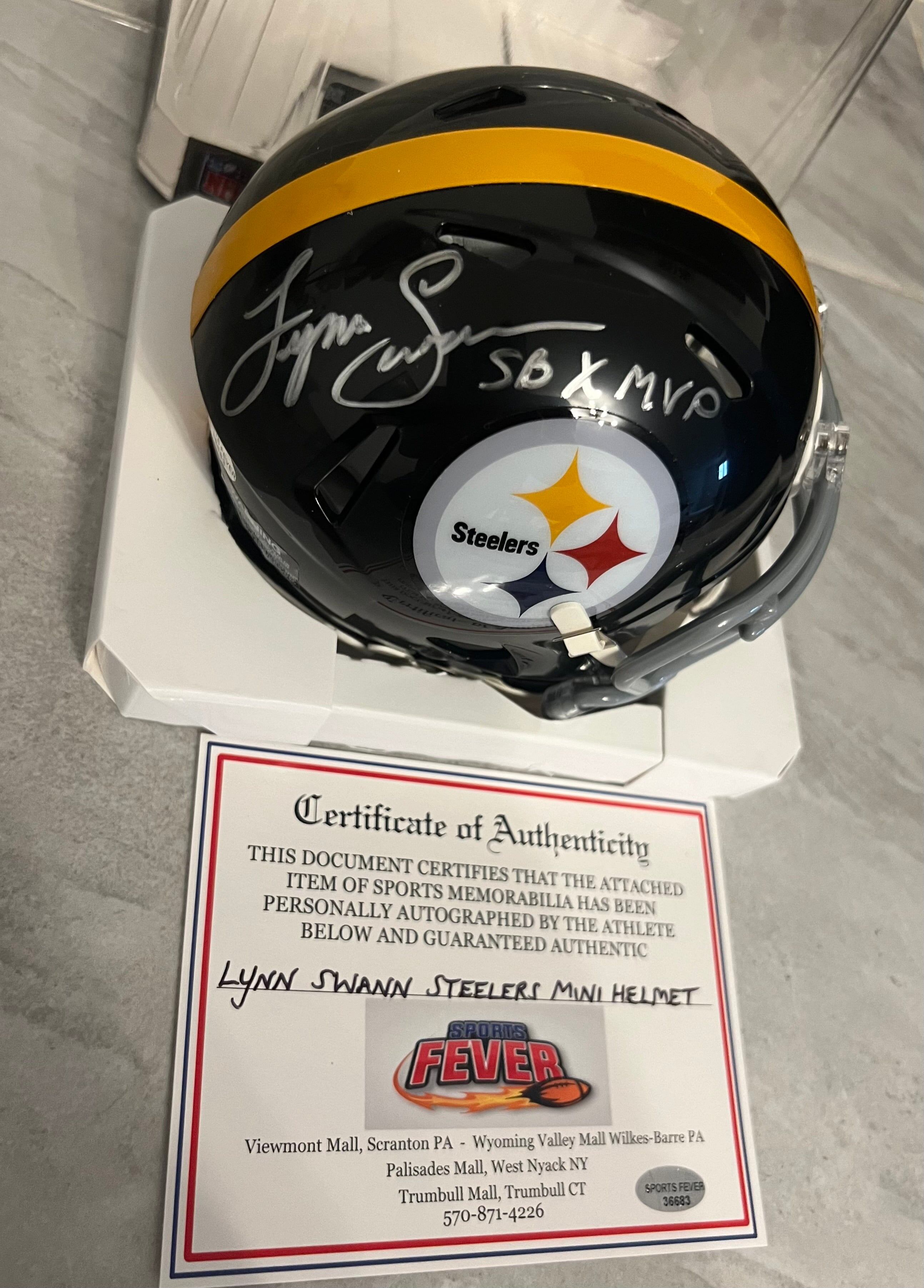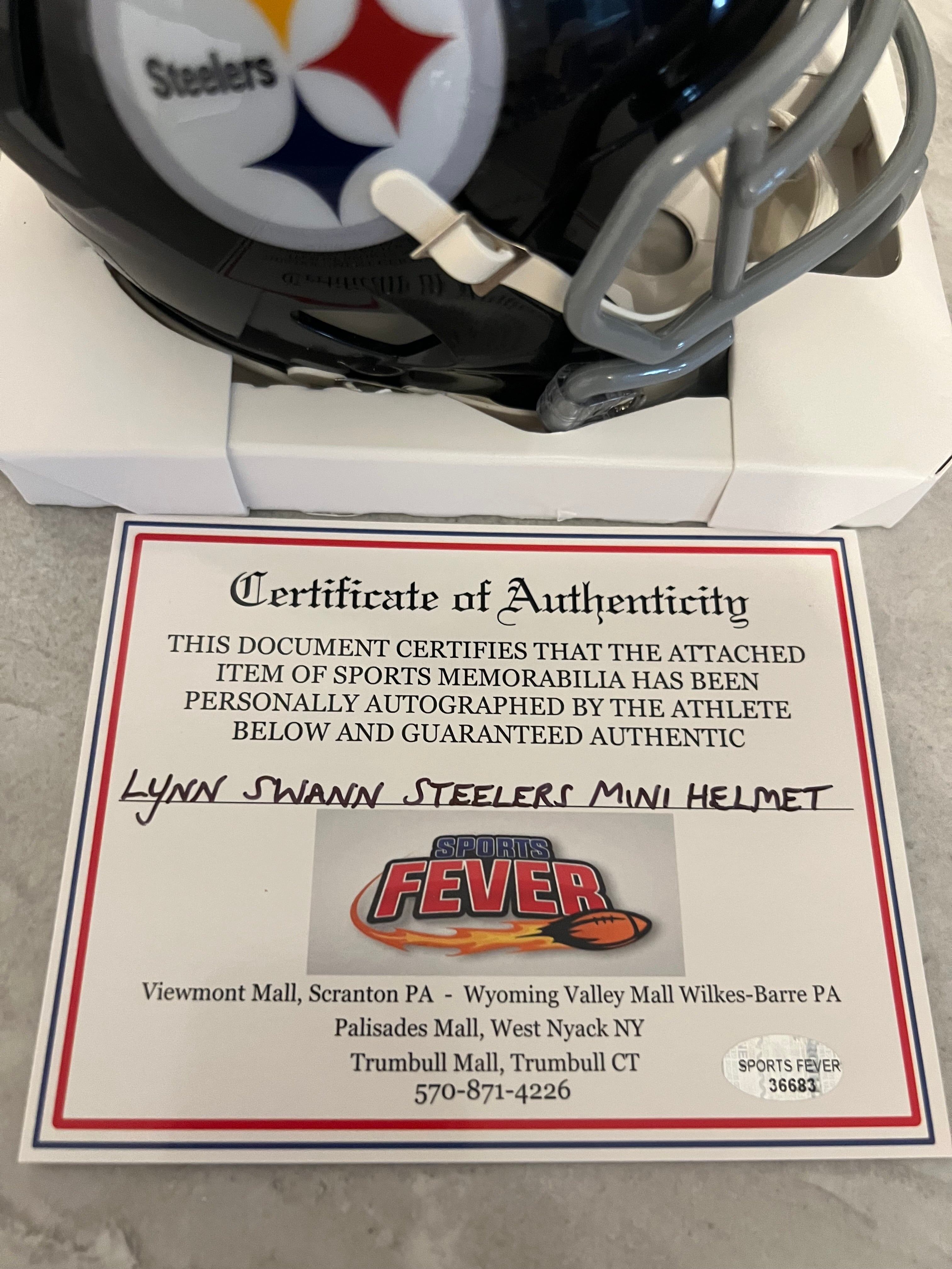 Lynn Swann autographed Pittsburgh Steelers mini helmet with Sports Fever COA… This is a hand signed standard size Riddell Mini helmet. ?This comes in perfect condition (new in the box)
